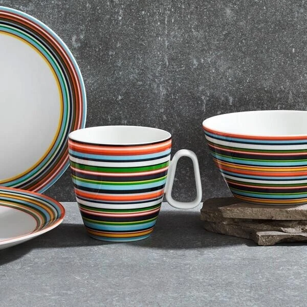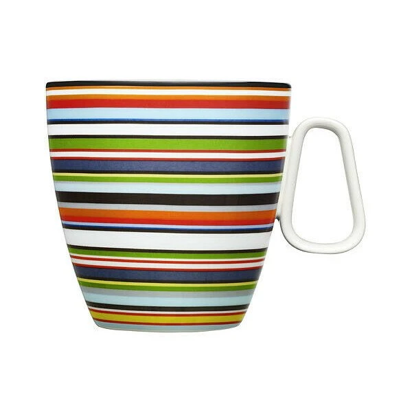 Fröhlicher als mit dem Henkelbecher Origo kann der Tag nicht beginnen. Er ist bunt gestreift und überrascht mit einem großzügigen Fassungsvermögen: 400 ml kann der peppige Streifenbecher von Iittala in sich aufnehmen, um mit leckeren Heiß- oder Kaltgetränken aufzuwarten. Das bauchige Design sowie die interessante Henkelform machen ihn zu einem Eyecatcher. Für Kaffee-, Tee- oder Milchgetränke ist der Porzellanbecher super geeignet und macht Lust auf mehr.