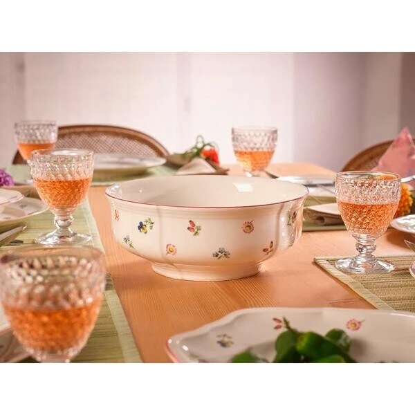 Die Kollektion Petite Fleur verleiht der Tafel ein romantisches und sommerliches Flair. Die feinen floralen Verzierungen unterstreichen die grazile Formensprache des Designs. Qualität von Villeroy & Boch seit 1748. Ein großer Salat zum Mittagessen, eine leckere Sauce oder auch ein besonderes Dessert servieren Sie besonders charmant in der runden Schüssel von Petite Fleur. Gefertigt aus hochwertigem Premium Porcelain. Natürlich geeignet für Spülmaschine und Mikrowelle. Erleben Sie die Geschirr-Kollektion mit charmantem Blümchendekor von Villeroy & Boch.